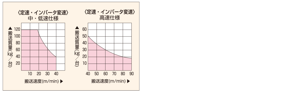 - 搬送質量は速度により変動します。「搬送質量の目安」をご参照ください。