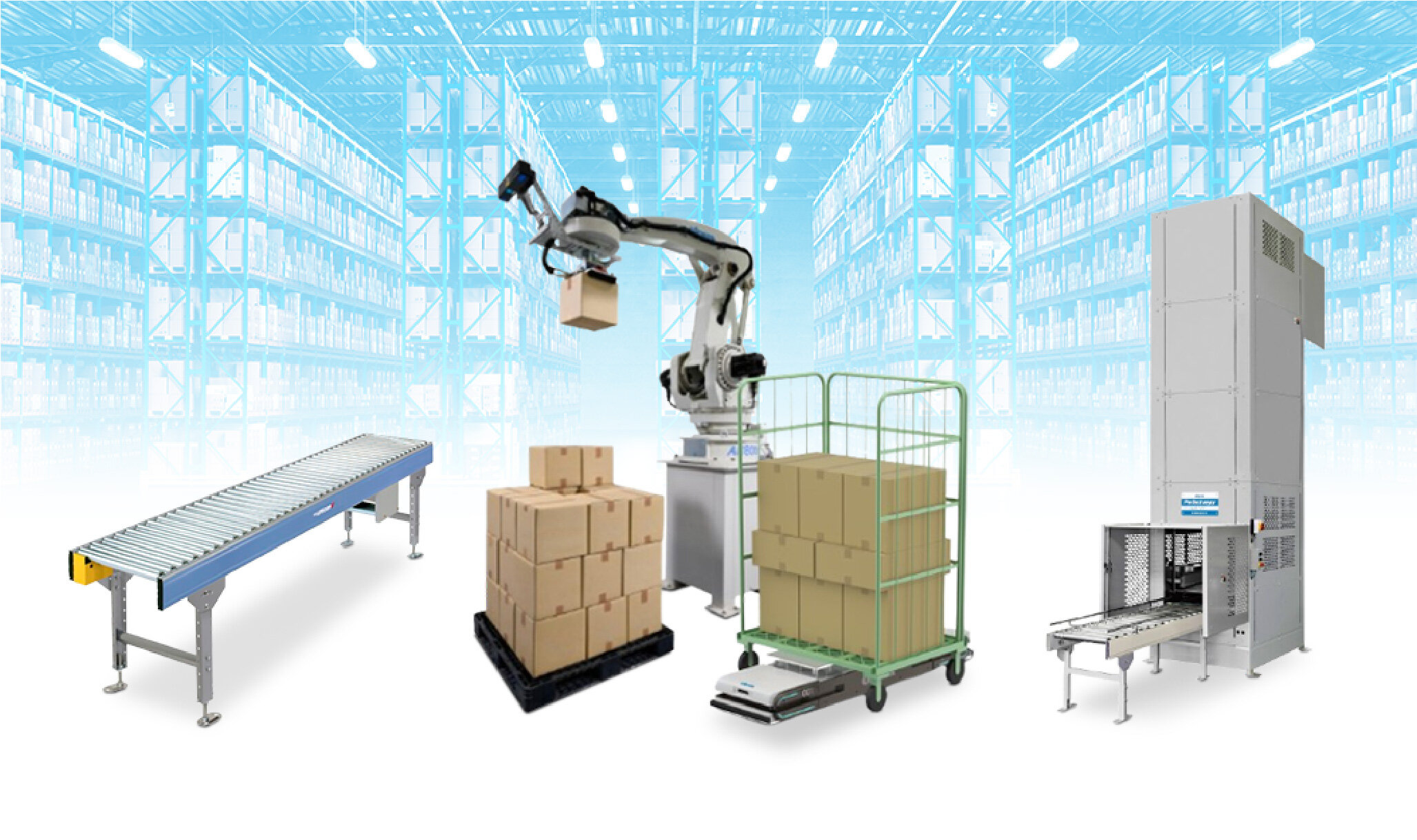 - 物品の取り扱いを人に代わって行ったり、サポートしたりするのがマテハン機器です。
