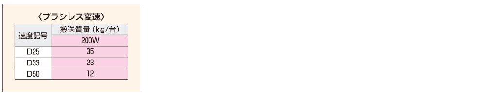 モータ出力 | D:ブラシレス変速 | 20:200W(IP66防水モータ) | ||||||||