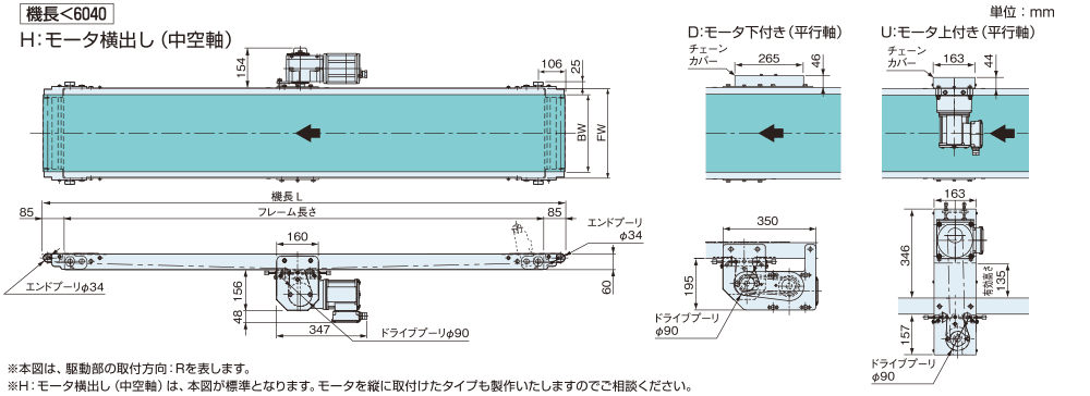 駆動部の取付方向 ※1 | R:搬送方向右側 L:搬送方向左側 | |||||
