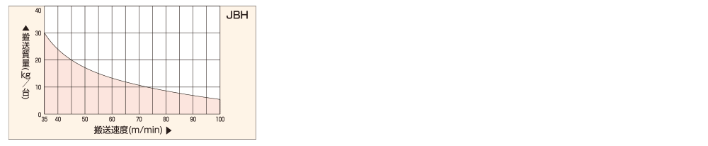注)変速仕様の場合、搬送速度が最大速度の1/3になると、搬送質量は最大速度時の40%に低下します。