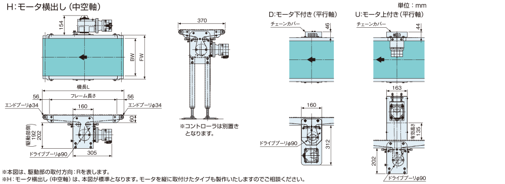 駆動部の取付方向 ※1※2 | R:搬送方向右側 L:搬送方向左側 | |||||||||