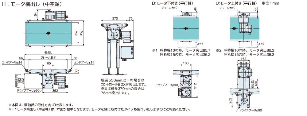駆動部の取付方向 ※1 | R:搬送方向右側 L:搬送方向左側 | |||||||||