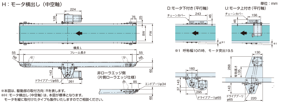 駆動部の取付方向 ※2 | R:搬送方向右側 L:搬送方向左側 | |||||||||