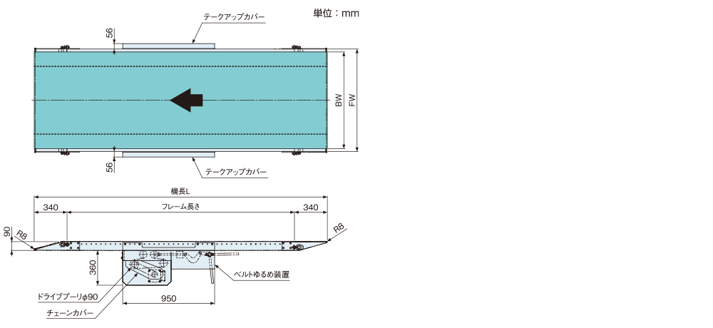 機種記号 | JBRE(センタドライブ 幅広上流側ローラエッジ・下流側逆ローラエッジ) | ||||
