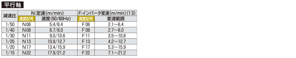 速度記号 | 「速度記号/コンベヤ速度表」をご参照ください | ||||||||