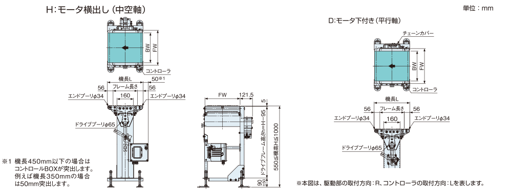駆動部の取付方向 ※1 | R:搬送方向右側 L:搬送方向左側 | |||||||||
