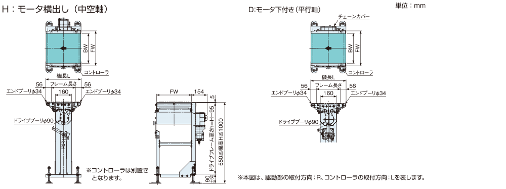 駆動部の取付方向 ※1 | R:搬送方向右側 L:搬送方向左側 | |||||||||