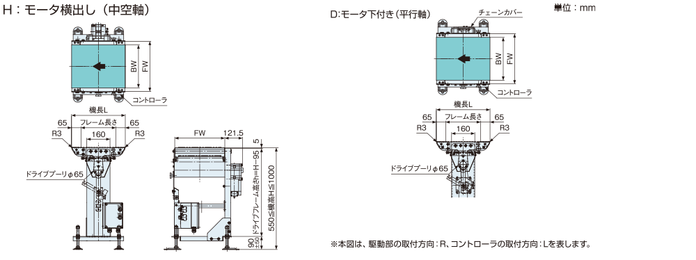 駆動部の取付方向 ※1 | R:搬送方向右側 L:搬送方向左側 | ||||||||||