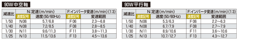 モータ出力 | N:定速 | 09:90W(IP65防水モータ) | |||||||||