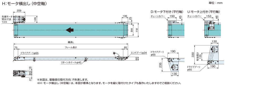 駆動部の取付方向 ※1 | R:搬送方向右側 L:搬送方向左側 | |||||||||