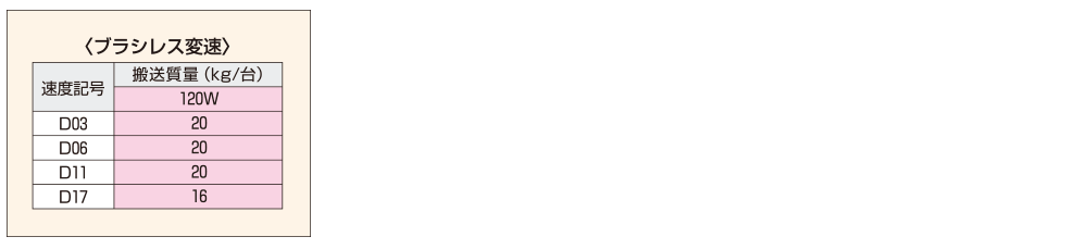 モータ出力 | D:ブラシレス変速 | 12:120W(IP66防水モータ) | ||||||||