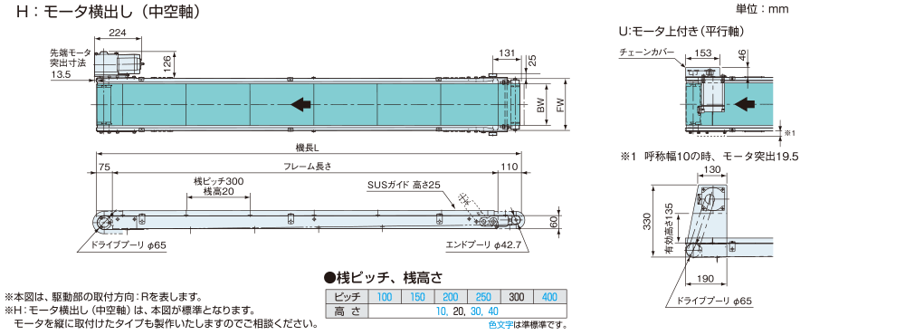 駆動部の取付方向 ※2 | R:搬送方向右側 L:搬送方向左側 | |||||||||