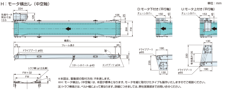 駆動部の取付方向 ※1 | R:搬送方向右側 L:搬送方向左側 | |||||||